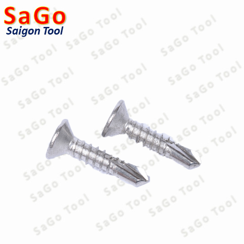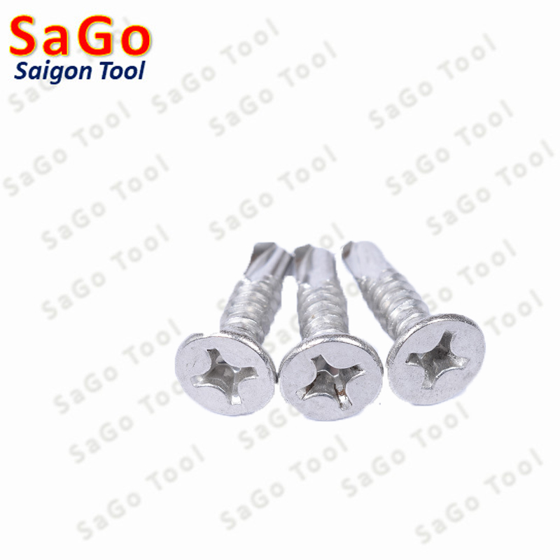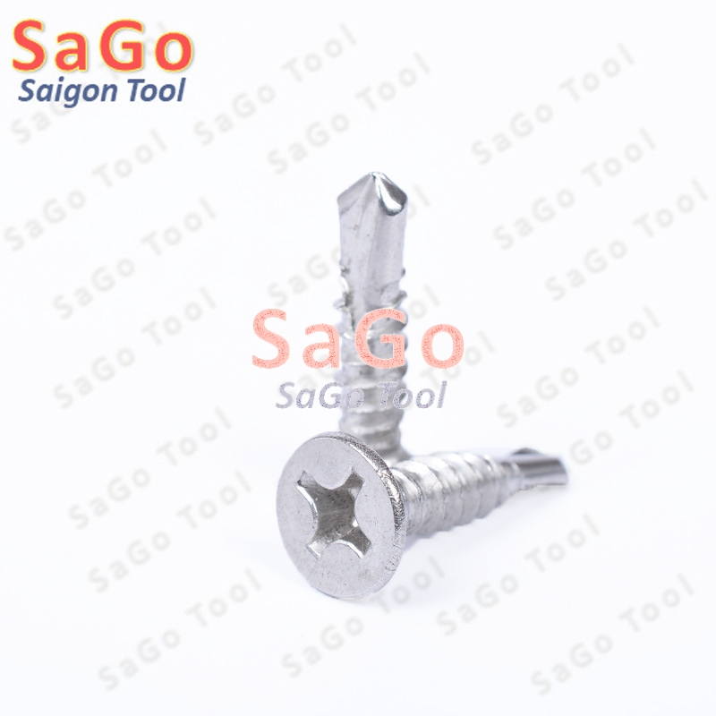 - vít tự khoan đầu bằng inox 304, vít đuôi cá hay còn gọi là vít tự khoan đầu chìm là một loại vít tự khoan có đầu mũ bằng phẳng, được dập chìm hình dấu cộng (chữ thập) ở giữa, đuôi vít hình đuôi cá giúp mũi tự khoan có thể khoan và xuyên qua các vật thể tôn, thép…